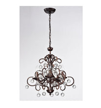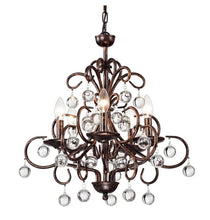 Enrich your home with the brilliance of this semi-polished dark amber chandelier, and enjoy the glittering play of light reflecting off the hanging round crystals. Install this fixture in your entryway, over your dining table or in your kitchen to bring a touch of elegance to your space. The fixture features gracefully curved hardware holding aloft five candelabra bulbs for a classic display that looks lovely in your foyer or dining room.